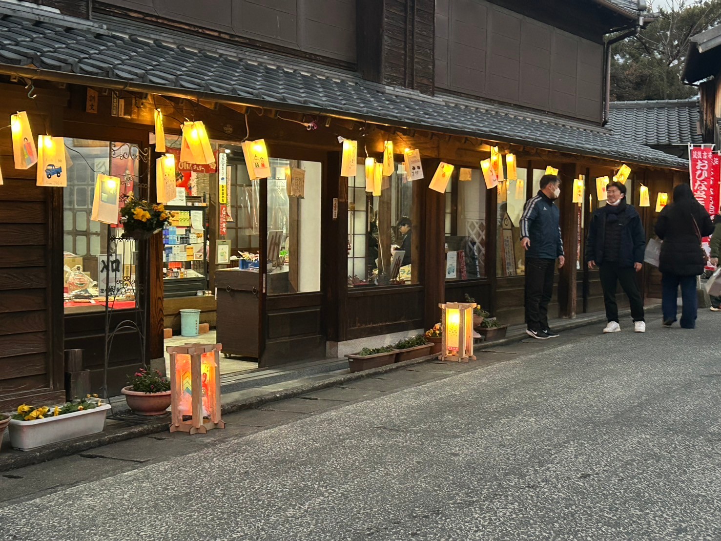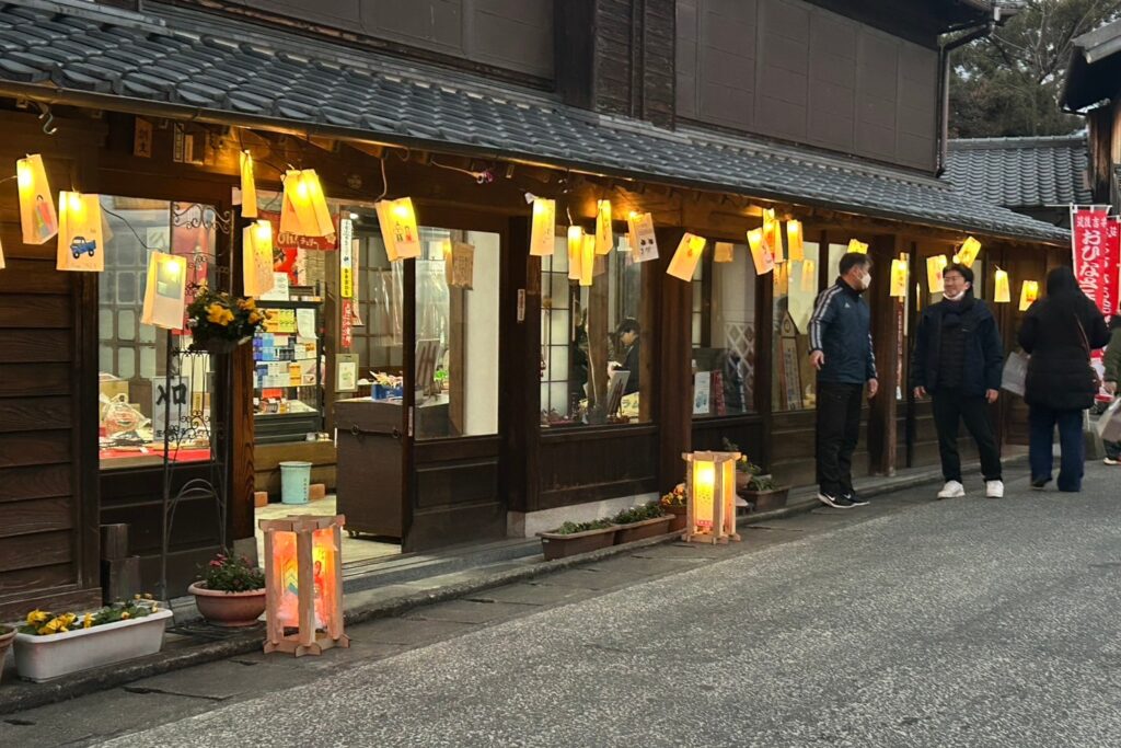 完成した行燈は、筑後吉井のハイシーズンである「おひなさまめぐり」の前夜祭に合わせてまちなかに展示され、幻想的な光が来訪者を迎えました。