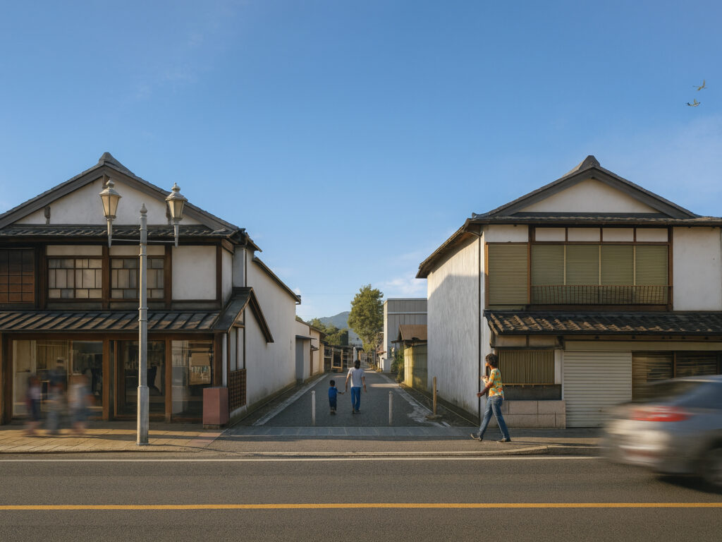 豊後街道に面した白壁の小路は、明治・大正期の土蔵造り商家が並ぶ歴史的な歩行空間です。筑後吉井の伝統的建造物群保存地区内にあり、子どもたちの通学路や観光客の回遊導線として活用されています。ウォーカブル推進都市を象徴するこの道は、地域に親しまれる風景を目指しています。